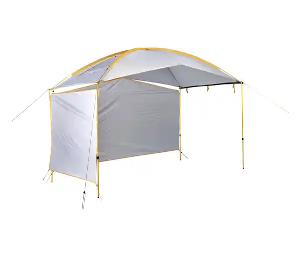 Tambu Sonnensegel »BASANT« Farbe: Hellgrau mit gelben Akzenten Material: Außenmaterial 100% Polyester, PU-beschichtet Gestänge Fiberglas und Stahl Transporttasche 100% Polyester, PU-beschichtet Maße: Außen ca. 340 x 190 cm Aufbauhöhe max. 275 cm Ø Fiberglasgestänge ca. 9,5 mm, Stahlgestänge ca. 16 mm Inhalt: Inkl. Seitenteile, Abspannmaterial, Gestänge, Heringe, Transporttasche und Aufbauanleitung Gewicht: Ca. 6,8 kg Gebrauchsanweisung: Produkt vor dem ersten Gebrauch prüfen. Nur bestimmungsgemäß verwenden. Verschmutzungen mit einem feuchten Tuch entfernen. Nach Gebrauch vollständig trocknen lassen. Warnhinweise: Von offenem Feuer und starken Hitzequellen fernhalten. Technische Details: Transporttasche ist wasserabweisend Wassersäule Außenzelt: ca. 2.000 mm Sonstige Hinweise: Lieferung in 1 Packstück per Postversand bis zur Haustür Keine Inselbelieferung B x H x T Packstück ca. 69 x 15 x 15 cm Aufbewahrungshinweise: Trocken aufbewahren Vielseitig einsetzbar ‒ Sonnen-, Wind- und Regenschutz in einem und ideal als Vorzelt, Schattenspender oder SichtschutzWassersäule des Außenzeltes von ca. 2.000 mm für zuverlässigen RegenschutzFür Van, SUV und Auto wahlweise direkt am Fahrzeug befestigt oder freistehend nutzbarMehrere Befestigungsmöglichkeiten über Dachreling-Gurte oder KederschieneKompatibel mit Kederschienen in 5 mm und 7 mmGroßzügige Fläche von ca. 340 x 190 cm und variable Aufbauhöhe bis ca. 275 cmMit Seitenteilen für zusätzlichen Wind- und SichtschutzIntegriertes Lüftungsfenster für angenehmes Klima unter dem SegelPFC-freie Materialien – ohne per- und polyfluorierte ChemikalienGestänge aus FiberglasAußenmaterial und Transporttasche aus 100% recyceltem PolyesterInkl. Seitenteile, Gestänge, Abspannmaterial, Heringe und Transporttasche