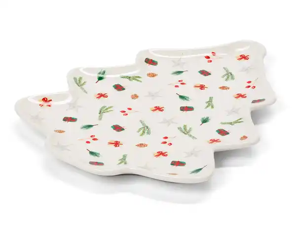 Teller in Tannenform Farbe: Weiß mit Weihnachtsmotiv Material: Porzellan Maße: B x H x T ca. 22 x 1,8 x 16,5 cm Inhalt: Inkl. Merkblatt für die Benutzung von Mikrowelle und Backofen Gewicht: Ca. 320 g Warnhinweise: ACHTUNG. Nur zum Erwärmen in der Mikrowelle und im Backofen – nicht zum Kochen geeignet Aus QualitätsporzellanWeihnachtliches MotivSpülmaschinengeeignetLänge ca. 22 cm, ideal als Keksteller