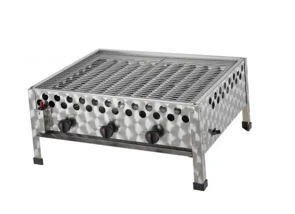 Grillen gehört im Sommer ganz gewiss zu einer der beliebtesten Freizeitbeschäftigungen. Wenn die Sonne lacht steht die nächste Grillparty kurzerhand vor der Tür. Für dieses Grillvergnügen ist ein Wurstbräter der richtige Begleiter. Der Gas-Wurstbräter hat eine große Grillfläche, die durch die besondere Bauart der Brenner sehr gleichmäßig beheizt wird. Deshalb ist dieses Gerät nicht nur im privaten Bereich einsetzbar, sondern hat sich auch in Gastronomie, Biergärten oder Imbissständen bewährt. Die drei getrennt voneinander regelbaren Brenner sorgen für eine optimale Grilltemperatur. Da muss niemand auf sein krosses Grillwürstchen verzichten. Ein rundum gelungenes Produkt, welches durch das Zubehör seine Einsatzfähigkeit schlagartig erweitert und dem Grillchef tolle Möglichkeiten beschert. 3 Edelstahl-Brenner, je ca. 4 kW Grillfläche: ca.: 60 x 48 cmEdelstahl-Gehäuseverchromter