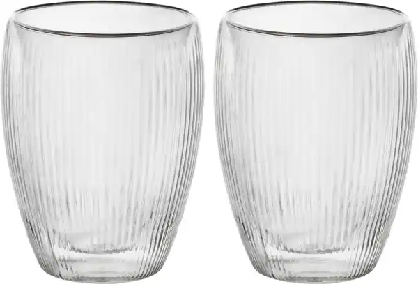 Aus doppelwandigem Borosilikatglas > Hitzebeständig bis 100 °C > Größe je ca. Ø 8,5 x 12 cm (je ca. 300 ml)