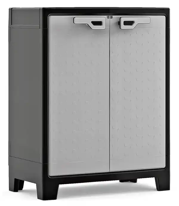 Titan Kunststoffschrank niedrig, ca. 80 x 44 x 100 cm - Hellgrau/Schwarz