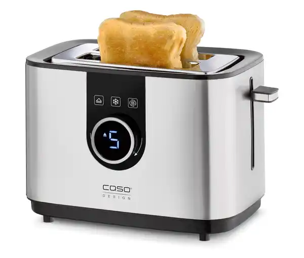 Toaster Selection T2 Farbe: Edelstahlfarben-schwarz Material: Edelstahl und Kunststoff Maße: B x H x T ca. 29 x 19 x 19,5. Höhe mit Aufsatz ca. 24,5 cm. Länge Kabel ca. 70 cm Inhalt: Inkl. Toaster, Brötchenaufsatz und Bedienungsanleitung Gewicht: Gewicht ca. 1,4 kg Leistung: Leistung 770–920 W Energieeffizienz-Angaben: Informationen zur Entsorgung sowie Sammelstellen in Ihrer Nähe finden Sie auf www.tchibo.de Technische Details: 230 V 50 Hz/60 Hz Sonstige Hinweise: Lieferung in 1 Packstück bis zur Haustür per Postversand. Keine Inselbelieferung möglich Moderner Design-Toaster mit hochwertigem Edelstahlgehäuse und LED-DisplayFür 2 Scheiben Toast oder Brot7 Bräunungsstufen einstellbar3 Funktionen: Toasten, Auftauen, StoppenAutomatische Brotscheibenzentrierung für gleichmäßige BräunungHerausziehbare KrümelschubladeInkl. Brötchenaufsatz zum Aufbacken von Brötchen oder CroissantsEinfache Handhabung durch Touch-Bedienfeld und DrehknopfMit KabelaufwicklungSchuko-Stecker