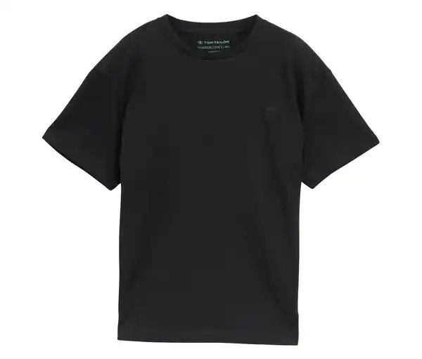 Tom Tailor Basic T-Shirt Farbe: Heavy black Material: 100% Baumwolle Passform: Regular Fit Klassisches, unifarbenes Basic T-Shirt mit Rippbündchen am RundhalsausschnittLogo-Patch auf der BrustAus atmungsaktiver, nachhaltiger und weicher Baumwolle für ein angenehmes Tragegefühl
