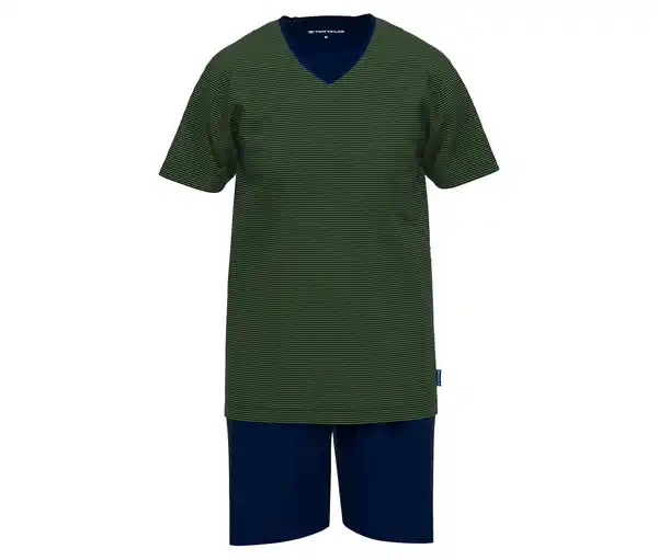 Tom Tailor Shorty-Pyjama-Set »Nevada«, grün Farbe: Oberteil dunkelgrün gestreift Hose dunkelblau Material: 100% Baumwolle Gebrauchsanweisung: Reinigen mit Perchlorethylen Schlafanzug aus der Tom Tailor Wäsche-Serie »Nevada«Reine BaumwolleBesonders strapazierfähig und hautfreundlichV-Ausschnitt und GesäßtascheSingle-Jersey-QualitätPassgenauer Schnitt