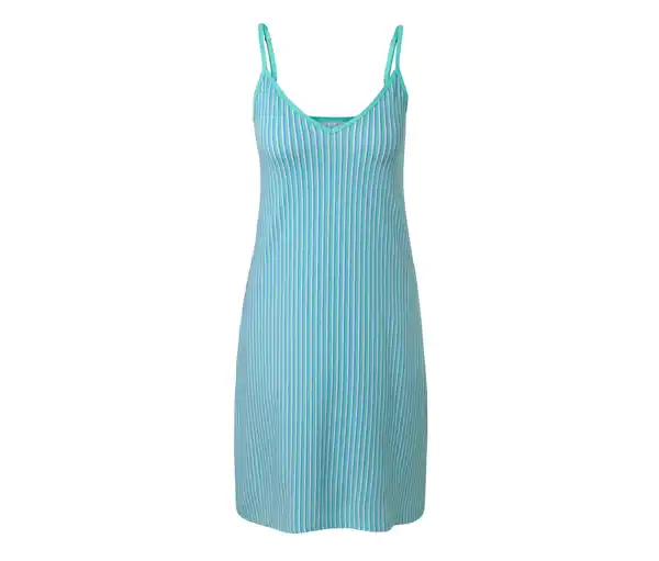 Trägernachthemd, gestreift Farbe: Blau-türkis-weiß gestreift Material: 48% Baumwolle (Unterstützt die Initiative Cotton made in Africa), 47% Modal, 5% Elasthan Maße: Gesamtlänge ca. 75 cm (Gr. M 40/42) Passform: Regular Fit Leichter Baumwoll-Modal-MixV-AusschnittLängenverstellbare TrägerMit hochwertigem Markenelasthan für Langlebigkeit und hohe WaschbeständigkeitDieses Nachthemd unterstützt die Farmer*innen.