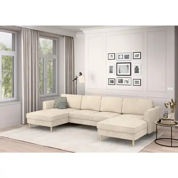 Trendmanufaktur Wohnlandschaft, Creme, Textil, Buche, 6-Sitzer, U-Form, 306x161 cm, Made in Europe, Stoffauswahl, Rücken echt, Armteil links, rechts, Wohnzimmer, Sofas & Couches, Wohnlandschaften, W