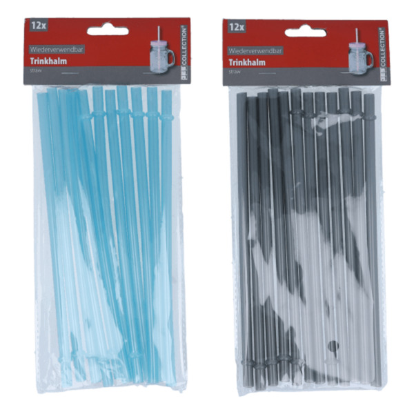 Wiederverwenbare Trinnkhalme, 21 cm, Kunststoff, 2-farbig sortiert