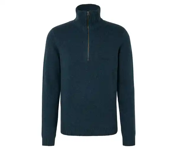 Troyer-Pullover Farbe: Blau meliert Material: 57% Baumwolle (aus ökologischem Anbau), 24% Acryl, 13% Polyamid, 5% Polyester (recycelt), 1% Elasthan Maße: Gesamtlänge ca. 72 cm (Gr. L 52/54) Passform: Regular Fit Hochschließender Kragen mit ReißverschlussFormstabile Rippbündchen an Ärmeln, Ausschnitt und Saum2-farbig meliertMit Bio-BaumwolleMit recyceltem MaterialDieser Pullover schützt Wasserressourcen.
