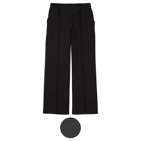 - Modell 2: Elastischer Innenbund an der Seite und am Rücken, vorderer Bund mit zwei Zierknöpfen und Gürtelschlaufen, dekorative Bundpartie mit Knopflöchern, zwei Falten vorne, zwei Taschen vorne, zwei falsche Leistentaschen hinten