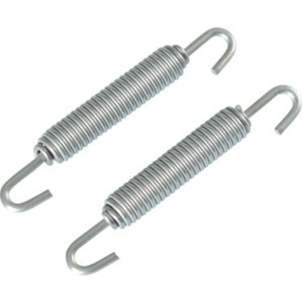 Universal Auspuff-Federn Material: V2A-Edelstahl Mit zwei drehbaren Gelenken In sechs Längen verfügbar: 46, 65, 57, 80, 90 oder 100 mm (über alles inkl. Haken gemessen) Inhalt: 2 Stück
