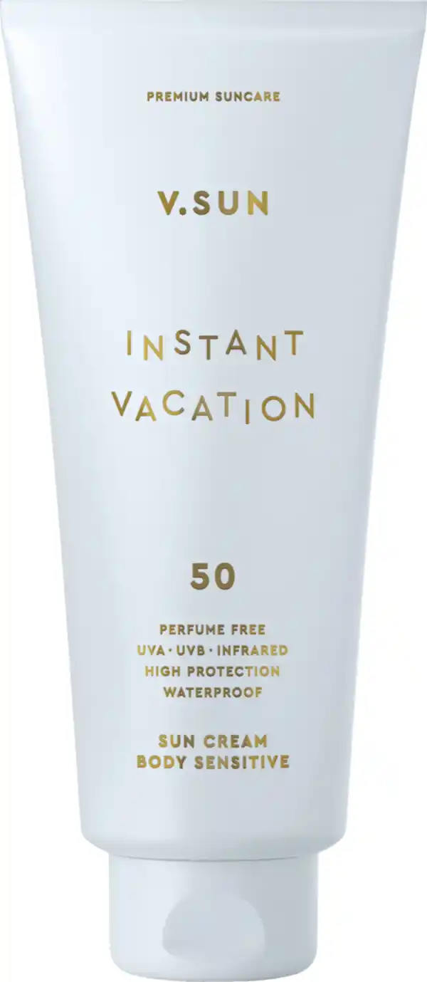Premium Sonnenschutz von V.SUN für den Körper (Lichtschutzfaktor 50) frei von Duftstoffen - mit Ectoin und Vitamin E. Schützt vor Sonnenbrand sowie vor freien Radikalen für sonnenempfindliche Haut. Schnell einziehende Creme frei von Duftstoffen. Sheabutter und Aloe Vera versorgen die Haut mit Feuchtigkeit, für ein samtiges Hautgefühl ohne Kleben.