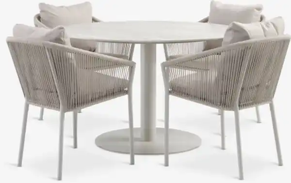 VAMDRUP Ø120 Tisch + 4 GILJA Stuhl beige