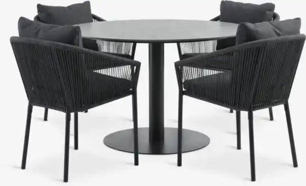 VAMDRUP Ø120 Tisch + 4 GILJA Stuhl grau