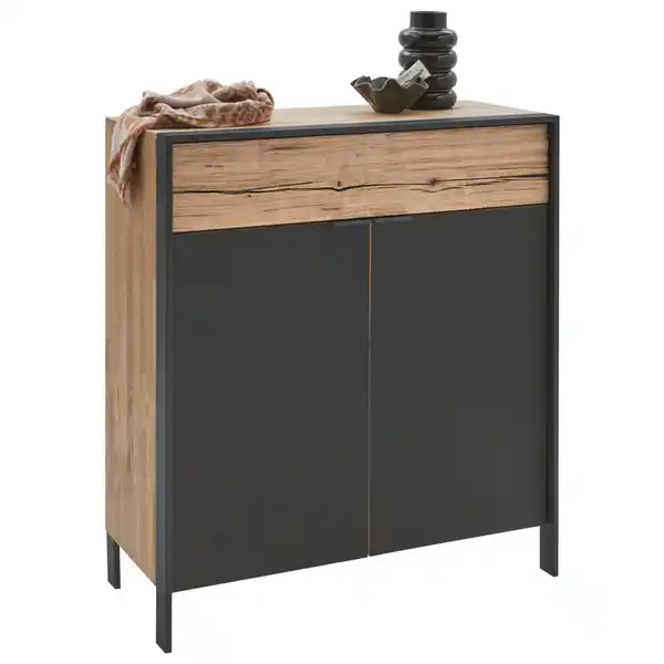 Valdera Schuhschrank, Graphit, Eiche, Holz, Wildeiche, massiv, 3 Fächer, 1 Schublade(n) Schubladen, 99x110.8x44.6 cm, Made in Germany, Dgm, DGM-Klimapakt, DGM-Emissionslabel, Typenauswahl, Beimöbel
