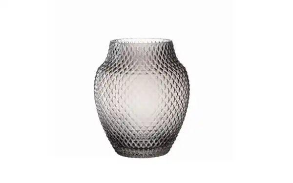 Die Vase aus der Serie Poesia in der Farbe grau besteht aus Glas und verschönert Ihr Zuhause.