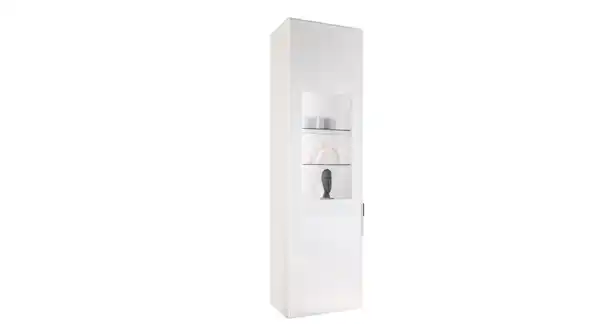 Das elegante und zeitlose Erscheinungsbild unserer Vitrine SANTORIN zieht unweigerlich alle Blicke auf sich. In einem makellosen Weiß gehalten und mit einer edlen Glasfront versehen, fügt sich das Möbel harmonisch in jede Einrichtung ein. Der glänzende chromfarbige Metallgriff setzt dezente, aber wirkungsvolle Akzente und verleiht dem Möbelstück einen Hauch von Luxus. Das moderne Design wird von der Glastür vervollständigt. Sie bietet einen Einblick in das Innere der Vitrine, der geradezu einlädt, besondere Gegenstände dekorativ in Szene zu setzen. Ob eine Vase mit frischen Blumen, ein paar stilvolle Kerzenhalter oder eine Sammlung von Fotos - die integrierte Beleuchtung bringt alles perfekt zur Geltung.