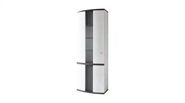 Ein echtes Highlight in Sachen Design und Ausstattung erwartet Sie mit unserer Vitrine CABANA. Die Kombination aus Weiß hochglanz und Absätzen in Graphit wirkt edel und harmonisch zugleich. Die hochglänzende Front wird durch geschroppte Elemente unterbrochen, welche dem Möbelstück eine spannende Tiefe verleihen. Ausgestattet mit LED-Beleuchtung erzeugt die Vitrine ein gemütliches Ambiente und wird gleichzeitig zu einem besonderen Blickfang im Raum. Perfekt abgerundet wird das elegante Design der Vitrine CABANA durch den silberfarbenen Griff aus Metall.