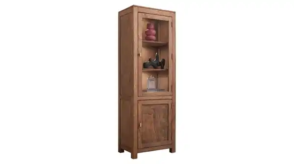 Vitrine mit Glastür Mango massiv gebeizt Breite 65 cm - NATURE