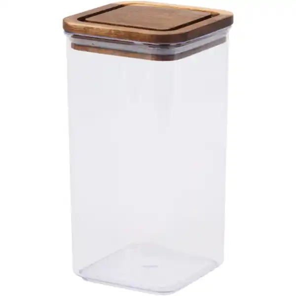 Größe mit Verpackung (LxBxH): 10 x 10 x 19.3 cm, Farbe: Braun, Transparant, Anzahl Aufbewahrungsfächer: 1, Art Aufbewahrungsbehälter für Lebensmittel / Getränke: Vorratsbehälter, Form: Viereckig, Inhalt: 1.2 Liter, Material Deckel: Holz, Mikrowellengeeignet: Nein, Mit Deckel: Ja, Mit Literangabe: Nein, Ofenfest: Nein, Spülmaschinenfest: Ja, Tiefkühlbeständig: Nein, Verschlusstyp: Kappe, Artikelnummer: 3220346