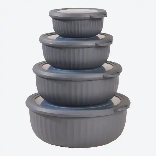 Das Vorratsdosenset von Home überzeugt durch vier vielseitige Größen, die ideal für die Aufbewahrung verschiedenster Lebensmittel sind. Dank der durchdachten Rillenstruktur liegen die Dosen sicher in der Hand und sorgen für ein modernes Erscheinungsbild in Ihrer Küche. Modernes Vorratsdosen-Set, 4-teilig Rundes Design mit praktischer Rillenstruktur Vier Größen für flexible Nutzung Größen: Ø ca. 12,2-22,5 cm, Höhe ca. 5,7-9 cm Fassungsvermögen: ca. 400 ml bis ca. 2400 ml