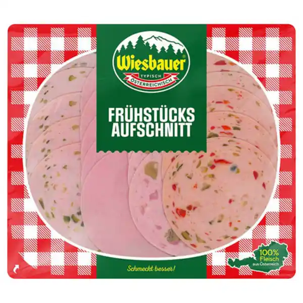 0,2 kg(9,95 €/1 kg)\n- Je 200-g-Packung - Frühstückaufschnitt bestehend aus verschiedenen Sorten Brühwurst