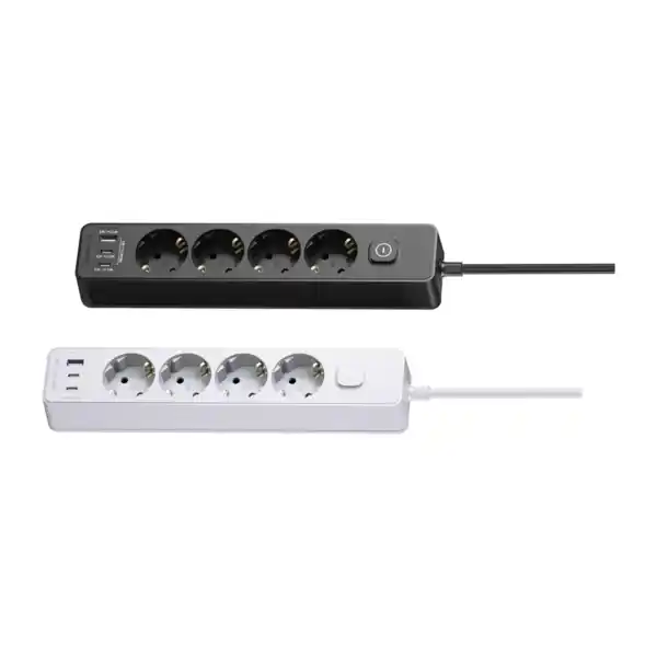 Modell NP-WS-W/B/GR; 4 Steckplätze; 1 USB A/2 USB C; Überlastungsschutz; Kabel: ca. 1,4 m; verschiedene Farbvarianten