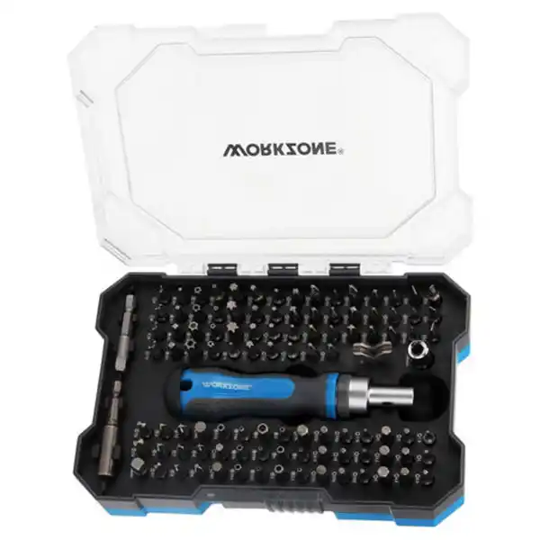 \n- Je Stück - 105-teilig - 99 Bits, 6,35 mm (1/4"), 25 mm, sandgestrahlt - 4 x Schlitz : 3 - 4 - 5 - 6 mm - 11 x Kreuzschlitz : PH0 x 2 - PH1 x 2 - PH2 x 5 - PH3 x 2 - 10 x Pozidrive : PZ0 x 1 - PZ1 x 2 - PZ2 x 5 - PZ3 x 2 - 13 x Torx : T8 - T10 x 2 - T15 x 2 - T20 x 2 - T25 x 2 - T27 - T30 - T40 - T45 - 19 x Sechskant : 1,5 - 2 - 2,5 - 3 - 4 - 4,5 - 5 - 5,5 - 6 mm - 1/16 - 5/64 - 3/32 - 7/64 - 1/8 - 9/64 - 5/32 - 3/16 - 7/32 - 1/4" - 3 x Verzahnung : M5 - M6 - M8 - 4 x Quadrat : S0 - S1 - S2 - S3 - 4 x Schraubenschlüssel : SP4 - SP6 - SP8 - SP10 - 3 x Drehmoment : 6 – 8 – 10 - 4 x Dreiflügel : 1 – 2 – 3 – 4 - 9 x Torx-Stampfer : T8H – T10H – T15H – T20H – T25H - T27H – T30H – T40H – T45H - 12 x Sechskant-Stampferbits: 2 – 2,5 – 3 – 4 – 5 – 6 mm – 5/64 – 3/32 – 7/64 – 1/8 – 9/64 – 5/32" - 3 x Kupplung : C1 – C2 – C3 - 1 x Adapter, 6,35 mm (1/4"), 25 mm - 1 x Adapter, 6,35 mm (1/4"), 50 mm - 1 x Bit für Haken - 1 x Magnetischer Bithalter, 6,35 mm (1/4"),60 mm - 1 x Ratschenschraubendreher, 6,35 mm (1/4"), mit 2-Komponenten-Griff - 1 x Kupplung, 6,35 mm (1/4") - Inkl. Box mit Schiebeverschluss und TPR auf der Rückseite/den Kanten für Anti-Rutsch-Effekt