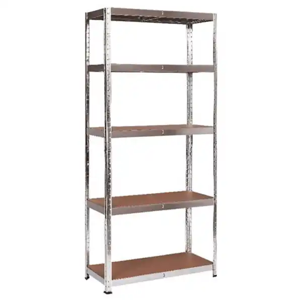 \n- Je Stück - 5 MDF Regalböden mit zusätzlicher Metallverstärkung - Einfach Montage durch Stecksystem - Tragfähigkeit pro Fachboden 160 kg - Verzinkte Oberfläche - Maße: 180 x 90 x 45 cm
