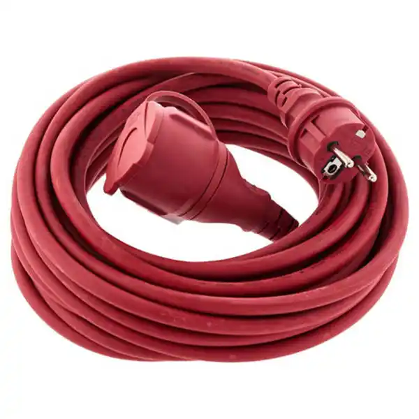 \n- Je Stück - In Schwarz oder Rot - Schutzkontaktstecker und -kupplung - Mit praktischer Gummiabdeckung - Mit erhöhtem Berührungsschutz - Zur kurzfristigen Verwendung im Freien geeignet - IP44 (spritzwassergeschützt) - Max. 3.680 W