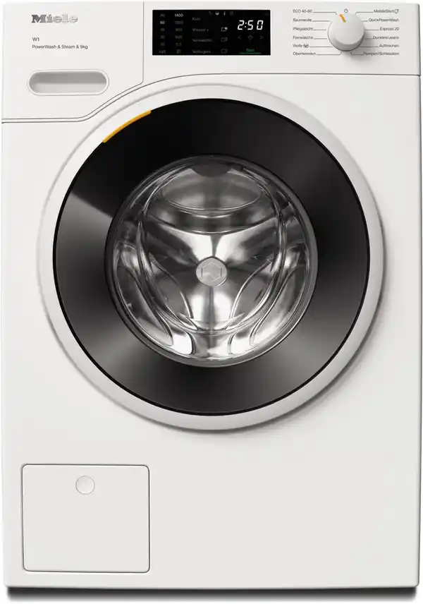 Waschmaschine WWD 380 WCS von Miele Das Modell WWD 380 WCS ist eine Stand-Waschmaschine von Miele. Wenn Sie eine große Familie haben, hat dieses Gerät mit einem Fassungsvermögen von 9 kg die richtige Größe. Machen Sie sich Ihr Zuhause smart, indem Sie die Stand-Waschmaschine via WLAN über das Smartphone oder Tablet bedienen und . Das Abmessen per Hand gehört der Vergangenheit an, denn die Kapseldosierung ermittelt für Sie die ideale Waschmittelmenge. Sie wollen eine Waschmaschine, die so flexibel ist wie Sie? Dann sind die Features Spülstop und Start-/Pause-Taste erwähnenswert. Funktionen und Programme Für Baumwolle, Jeans, Pflegeleichtes, Wolle sowie Blusen und Hemden besitzt das Gerät eigene Programme. Stark verschmutzte Kleidung, die eine intensivere Reinigung nötig hat, erhält diese dank der Vorwäsche-Taste. Mit dem Fein-Programm und dem Kaltwasch-Programm kann entsprechend empfindliche Kleidung schonend behandelt werden. Vom Kurz-Programm, von der Kurz-/Zeitspar-Taste und vom Schnell-Programm profitieren Sie, wenn es fix gehen muss. Clevere Sensorik sorgt dafür, dass sich der Wasserverbrauch an die Füllmenge anpasst und. Der Wassermengenzähler garantiert dabei Präzision in hohem Maße. Stimmen Sie die voreingestellten Programme auf die Ansprüche der Textilien ab, indem Sie den Wasserverbrauch erhöhen oder den Schleudervorgang komplett ausstellen. Weitere Merkmale der Stand-Waschmaschine Die Kindersicherung und das Mehrfach-Wasserschutzsystem bieten extra viel Sicherheit. Eine Selbstreinigungsschublade gehört ebenso zur Ausstattung der Miele WWD 380 WCS. Mit einer Geräuschemission von maximal 72 dB arbeitet die Miele WWD 380 WCS außerordentlich leise. Das Modell trägt die Energieeffizienzklasse A. Die Waschmaschine mit einer Maximalzahl von 1400 U/Min. wurde mit der Schleuderwirkungsklasse B ausgezeichnet. Das säulenfähige Modell lässt sich auf einen Trockner stellen. Auf diese Weise sparen Sie viel Platz. An der rechten Seite befindet sich der Tür-Anschlag. Unsere Kaufempfehlung Sie möchten eine Waschmaschine, die über das Smartphone bedient werden kann, über eine Kindersicherung und Wasser-Sicherung verfügt und sogar selbständig das Waschmittel hinzugibt? Dann haben Sie mit der Miele WWD 380 WCS das richtige Modell gefunden.