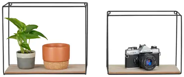 Dieses Wandboardset in Naturfarben und Schwarz ist ein echter Blickfang für Ihr Zuhause. Die Kombination aus einem schwarzen Korpus und naturfarbenen Ablagen wirkt modern und gleichzeitig gemütlich. Mit einem ca. Maß von 30 cm Breite, 27 cm Höhe und 25 cm Tiefe bietet das Wandboardset ausreichend Platz für Deko-Artikel, Bücher oder andere Gegenstände. Das Wandboardset ist aus Metall und Holzwerkstoff gefertigt und die Oberfläche ist lackiert. Die maximale Belastbarkeit beträgt 5 kg. Das 2-teilige Set lässt sich individuell an der Wand anbringen und schafft so eine gemütliche Atmosphäre in Ihrem Zuhause.