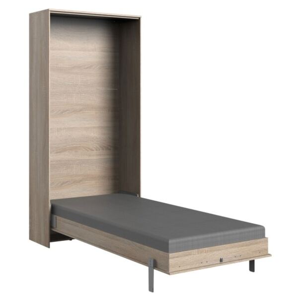 Dieses Möbelstück im klassischen Stil in Eiche Sägerau Nachbildung hat ein vertikales Design und lässt sich ganz leicht ausklappen, so dass du genügend Platz für einen erholsamen Schlaf hast. Das Wandklappbett Juist ist perfekt, wenn du einen zusätzlichen Schlafplatz brauchst, ohne dass du kostbaren Platz in deiner Wohnung opfern musst! Noch besser: Wenn du mit dem Schlafen fertig bist, klappst du es einfach wieder an die Wand und voilà! - und schon hast du deine gesamte Bodenfläche zurückgewonnen, als ob nichts gewesen wäre. Warum gönnst du dir also nicht noch heute dieses tolle Bett und sorgst dafür, dass es dein nächster Übernachtungsgast so bequem wie nur möglich hat? Schließlich ist guter Schlaf unbezahlbar!Die verbauten Beschläge sind wartungsfrei und für ein Matratzengewicht von 13 - 21 Kg geeignet.Maximale Matratzenhöhe 185mm