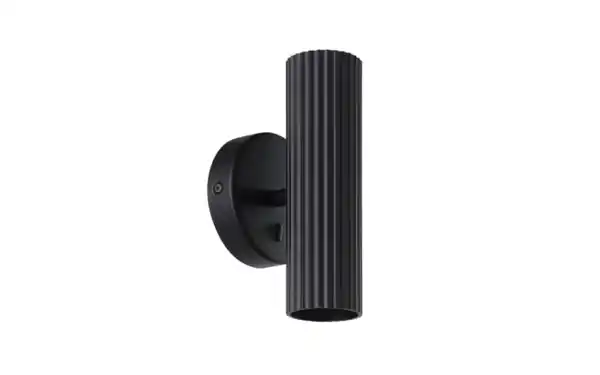 Die schlichte Wandleuchte aus der Serie Portillo ist aus Metall in Schwarz, matt gefertigt, das Licht wird von unten und von oben ausgestrahlt,