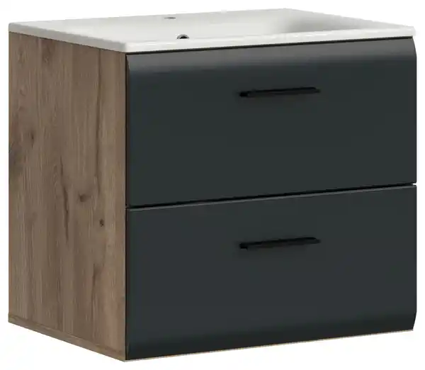 Waschtischkombi Ice Schwarz/Eiche dunkel