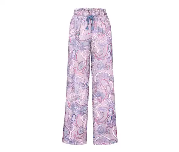 Web-Relaxhose Farbe: Mehrfarbiger Paisley-Alloverprint Material: 97% Viskose, 3% Elasthan Maße: Innenbeinlänge ca. 76 cm Passform: Regular Fit Weich fließende Viskose-Stretch-QualitätElastischer Bund mit BindebandWeit geschnittenes BeinMit hochwertigem Markenelasthan für Langlebigkeit und hohe WaschbeständigkeitDiese Relaxhose beinhaltet Fasern aus nachhaltigem Holz.