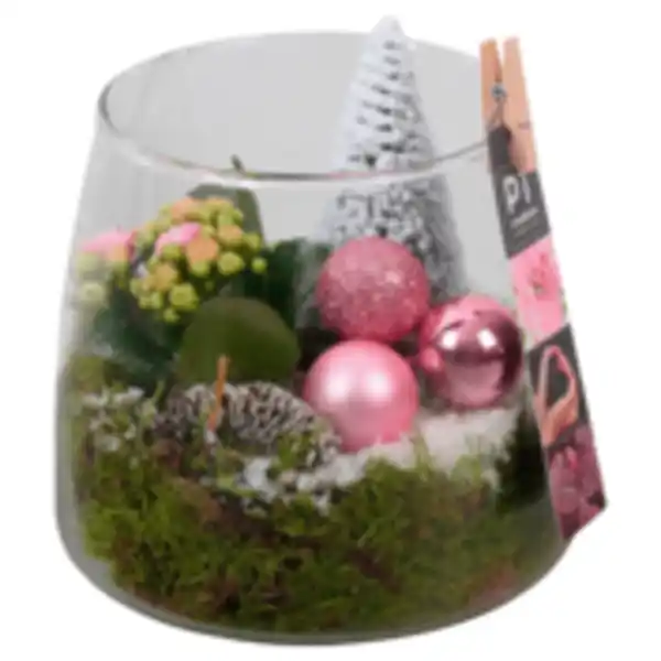 - dekorativ bepflanzte Glasvase mit Weihnachtsdeko, versch. Farben, je St.