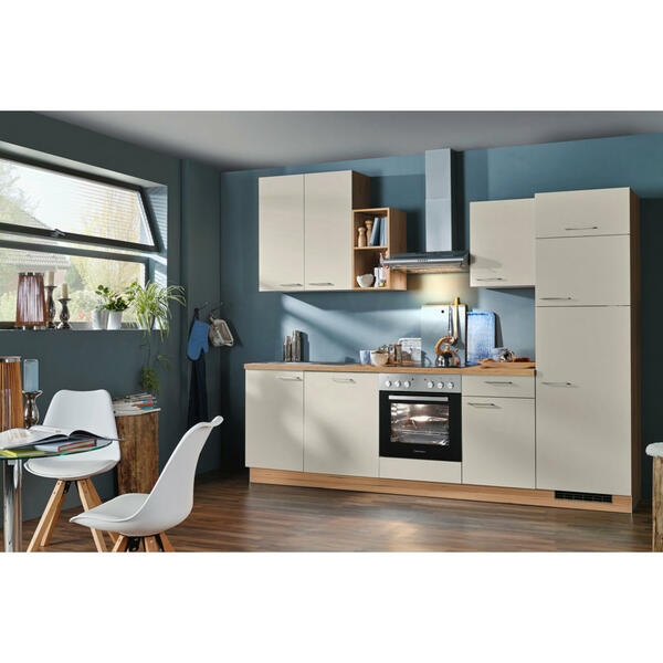 Welnova Küchenblock, Eiche, Hellgrau, Metall, 1 Schubladen, nur wie online abgebildet bestellbar, A, 280 cm, Zusatzausstattung erhältlich, vormontierter Korpus, Küchen, Küchenzeilen & Küchenblö