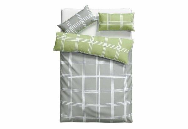 Wendebettwäsche Karo in Gr. 135x200 oder 155x220 cm, my home, Linon, 2 teilig, karierte Bettwäsche aus Baumwolle, Bettwäsche mit Wendeoptik, Grau|grün