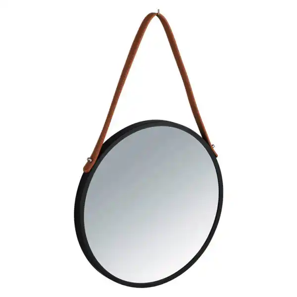Wenko Wandspiegel, Braun, Schwarz, Metall, Kunststoff, Leder, rund, 30x30x3 cm, Spiegel, Wandspiegel