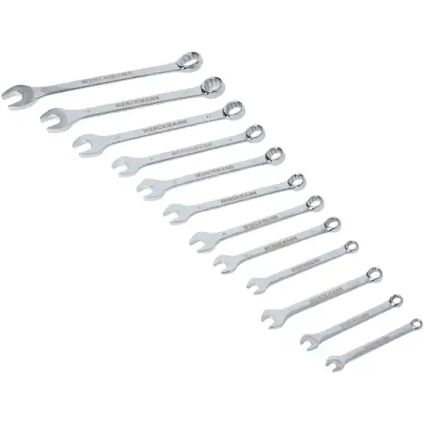Mit diesem 12-teiligen Ringschlüssel-Set von Werckmann bist du für jede Aufgabe gerüstet! Von 6 bis 22 mm hast du immer die richtige Größe zur Hand. Hergestellt aus robustem Cr-V-Stahl und ordentlich in einem praktischen Halter organisiert.
