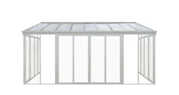 HC Garten & Freizeit Wintergarten aus Aluminium, ca. 300 x 548 x 312 cm - Weiß Modernes Wanddesign zur Erweiterung Ihres Wohnraums Robuste Aluminiumkonstruktion und kristallklare Polycarbonat-Wände mit UV-Schutz Sicher und äußerst langlebig für den ganzjährigen Gebrauch Vorinstallierte Türen in 3 Wänden, Türmaße: H208 x B128 cm 3-fach abschließbare Schiebetüren für verbesserte Belüftung Eingebautes Rinnensystem mit verstellbaren Rinnenköpfen (2 Stück/Satz) Schneelast: 100 kg/m² Der Aufbau einfach und schnell durchführbar Material Aluminium Farbe Weiß Maße Gesamtgröße: L300 x B548 x H312 cm Vordere Höhe: 224 cm, Basismaße: L292 x B546 cm Technische Daten 16,5 m² Wohnfläche Aluminiumrahmen mit 1,5-3,0 mm Dicke und Pulverbeschichtung Dachpaneel: 8 mm Doppelstegplatten aus Polycarbonat mit UV-Schutz Wandpaneel: 3 mm feste Polycarbonatplatte, kristallklar mit UV-Schutz Bindemittel: 1,5-2,0 mm verzinkter Stahl mit Pulverbeschichtung Lieferumfang 1x HC Garten & Freizeit Wintergarten aus Aluminium, ca. 300 x 548 x 312 cm - Weiß Alle Zubehörteile und Schrauben für eine einfache Montage enthalten