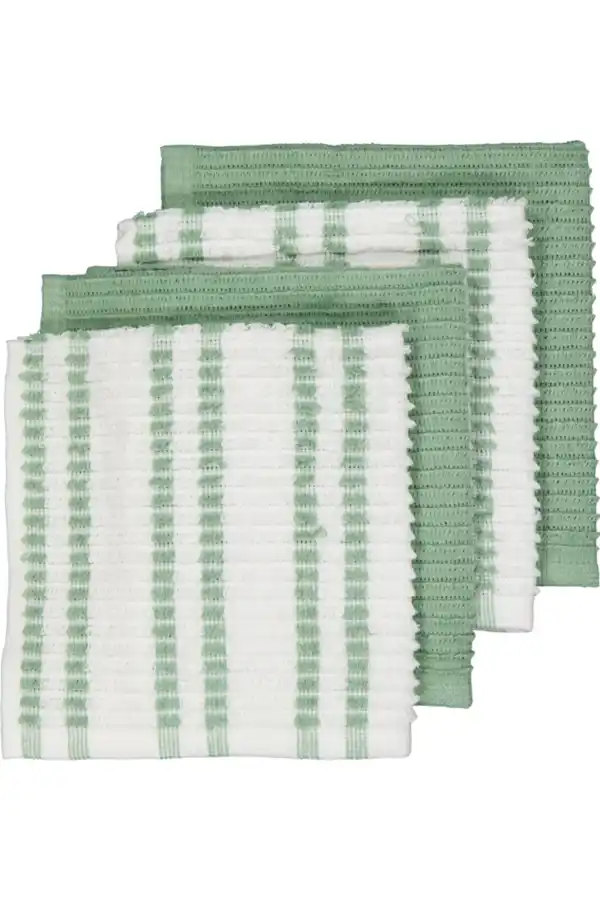 Diese grünen Spültücher haben eine gewebte Struktur und ein Streifenmuster in Grün und Weiß. Dank ihrer Größe von 35 x 35 cm sind sie praktisch zum Reinigen deiner Arbeitsplatte oder des Geschirrs. Mit dem Set von 4 Stück hast du immer ein sauberes Tuch zur Hand. Das Material ist eine Mischung aus Baumwolle und Polyester, wodurch sich jedes Tuch leicht und geschmeidig anfühlt.