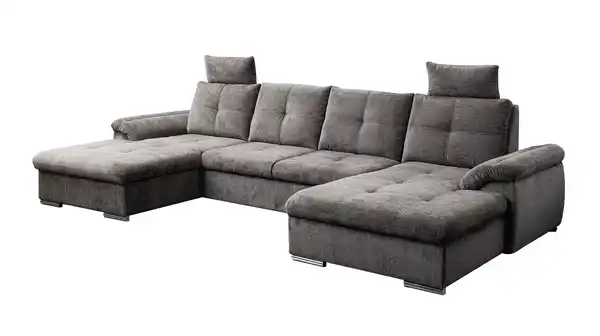 Unsere Wohnlandschaft ELBA ist als nur ein Möbelstück. Sie wird zum Mittelpunkt Ihres Wohnzimmers und macht es zu einem Ort, an dem Erinnerungen geschaffen und Geschichten erzählt werden. Der angenehm weiche Chenille-Bezug hat eine außergewöhnliche Textur und einen leicht schimmernden Effekt. In Grau fügt sich die große Wohnlandschaft dabei problemlos in unterschiedlichste Einrichtungsstile ein. Für eine gemütliche Ausstrahlung sorgen die Steppungen auf Rücken und Sitzfläche. Silberfarbene Standbeine mit einer Höhe von ca. 5 cm fügen sich wunderbar in das elegante Gesamtbild der Wohnlandschaft ein. Und dank des echt bezogenen Rückens können Sie dieses Modell auch frei im Raum platzieren - ideal für offene Wohnkonzepte und Ihre ganz persönlichen Gestaltungsideen.
