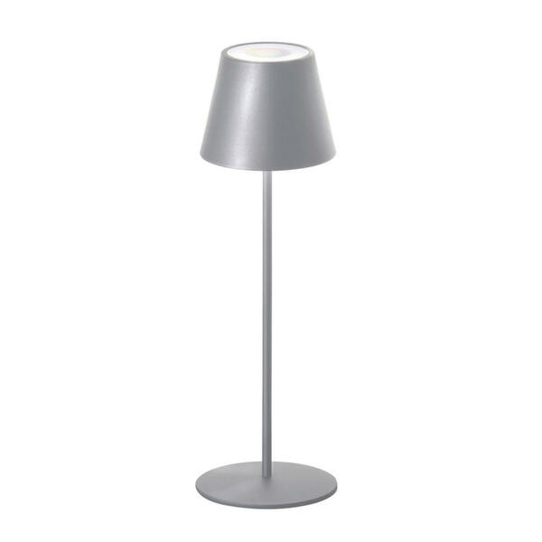Akku-Tischleuchte Cosenza, in der Farbe Silber, aus dem Material Metall Der Artikel hat eine Größe von 12 cm., die Besonderheiten des Artikels sind Farbwechsler, stufenverstellbar, tragbar, kabellos, aufladbar über Usb.