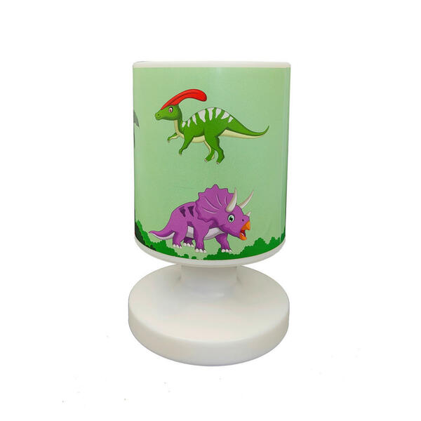Kindertischleuchte, in der Farbe Mehrfarbig, aus dem Material Kunststoff und das Design Dinosaurier,Dinosaurier. die Form des Artikels ist zylindrisch,zylindrisch. Der Artikel hat eine Größe von 13x13x20 cm., hat die Auszeichnung: Ce., die Besonderheiten des Artikels sind kabellos.