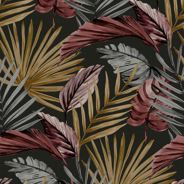 Vliestapete, in der Farbe Braun, Rot, Schwarz, aus dem Material Kunststoff, Papier und das Design Blätter. das Material setzt sich aus Vlies zusammen.Der Artikel hat eine Größe von 52 cm., hat die Auszeichnung: Made in Europe.