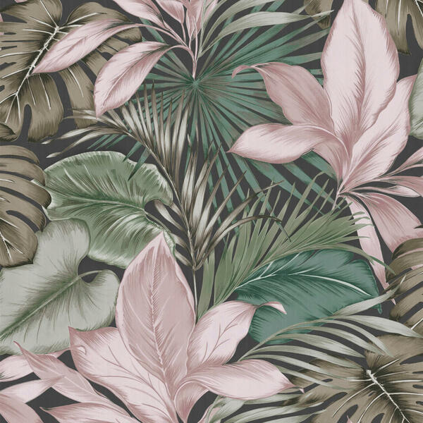 Vliestapete, in der Farbe Grün, Pink, aus dem Material Kunststoff, Papier und das Design Blätter. das Material setzt sich aus Vlies zusammen.Der Artikel hat eine Größe von 52 cm., hat die Auszeichnung: Made in Europe.