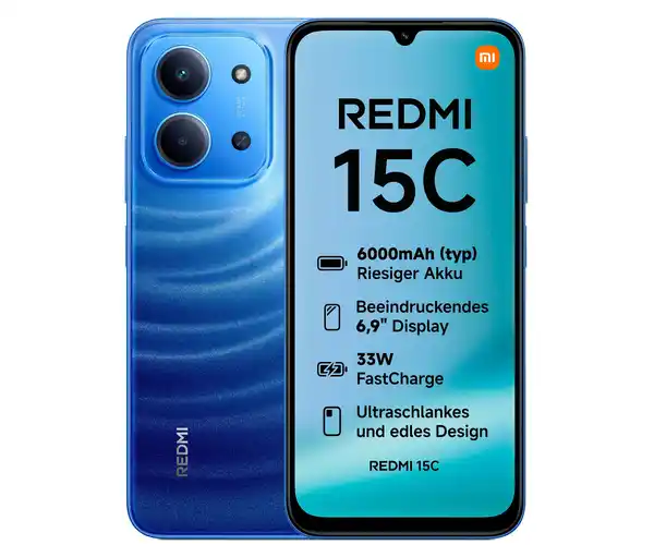 Xiaomi Redmi 15C 128 GB Moonlight Blue Inkl. SIM-Karte für Smartphone-Tarif6,9 Zoll / 17,52 cm Dot Drop DisplaySmartphone mit 128 GB Speicher (erweiterbar)50 MP AI Dual-Kamera, 8 MP FrontkameraLeistungsstarker Akku mit einer Kapazität von 6000 mAh