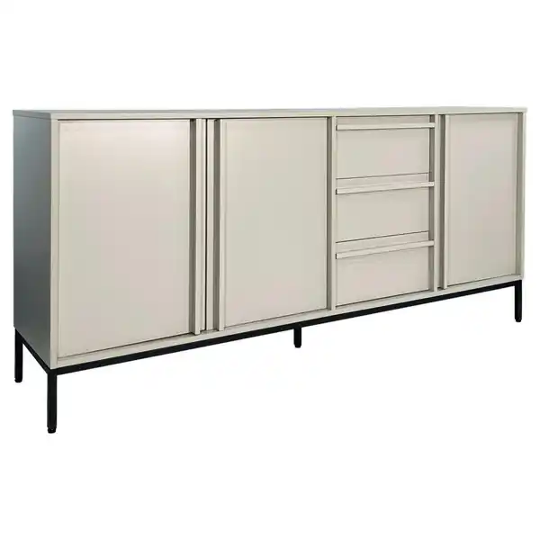 XoraSIDEBOARD Wabi, in der Farbe Schwarz, Hellgrau, aus dem Material Holz, aus dem Holztyp Kautschukholz, vollmassiv Das Möbelstück hat 3 Fächer. Das Möbelstück hat 3 Schubladen. die Türen sind Drehtür. Der Artikel hat eine Größe von 180x81x40 cm., hat die Auszeichnung: ISO 9001, Reach, Bsci, DIN EN ISO 14001, FSC Mix., die Besonderheiten des Artikels sind Beimöbel erhältlich, stehend., folgendes ist beim Kauf dieses Artikels dabei: Einlegeböden.