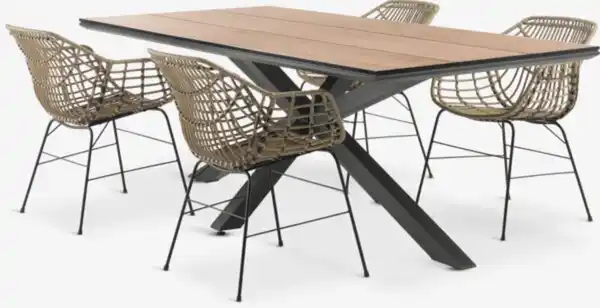 YPNASTED L215 Tisch + 4 ILDERHUSE Stuhl natur